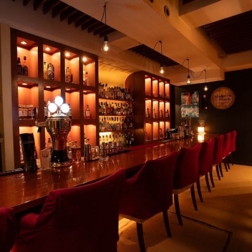 お一人様でも気軽に立ち寄りやすいカウンター席をご用意しております。お仕事帰りなどに、ダウンライトの落ち着いた空間で一杯いかがですか?また、肩を並べて語り合えるので、デートや気の置けない仲間とのお食事などにも人気のお席です◎